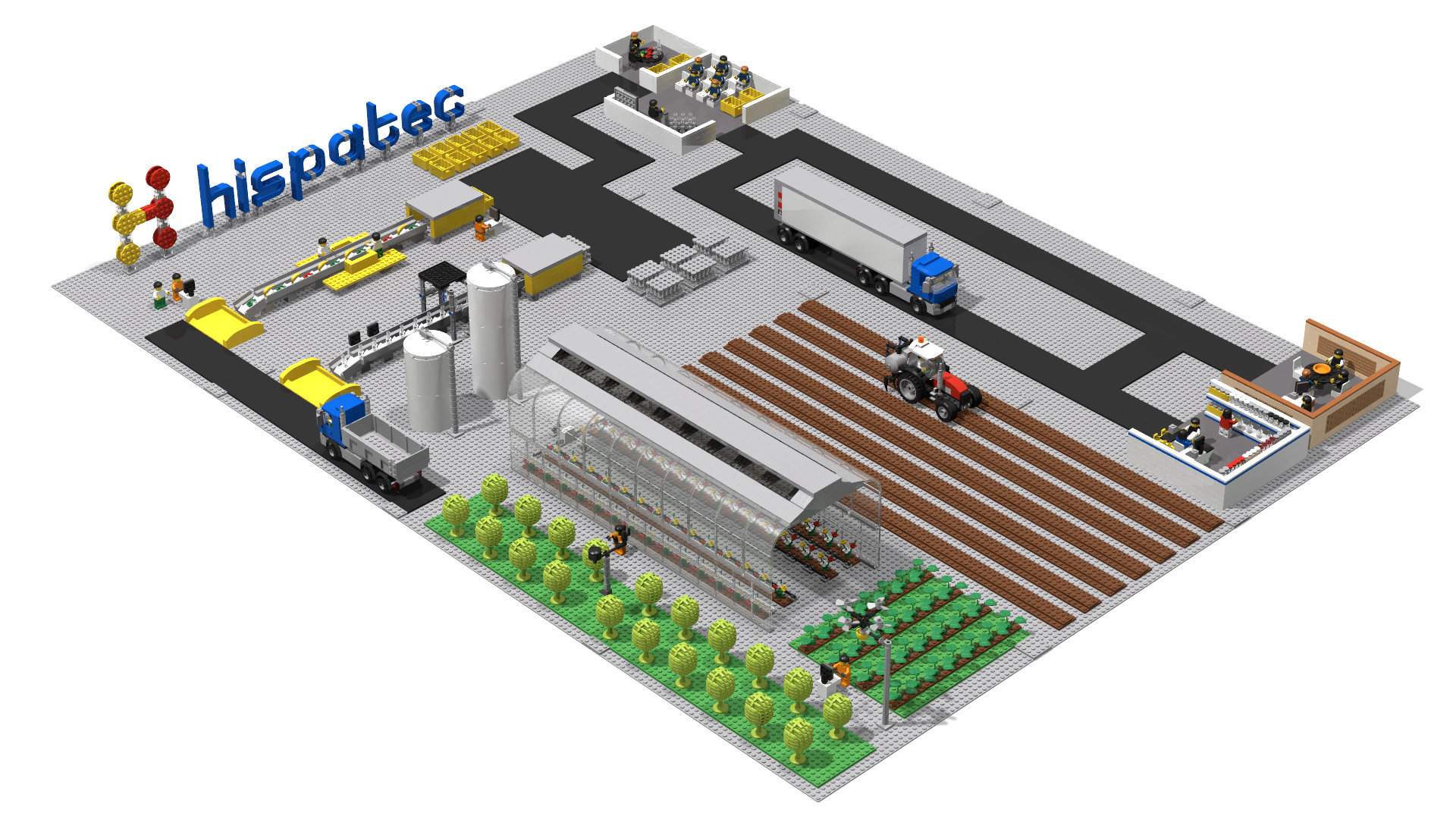 Esta maqueta de grandes dimensiones ha sido realizada en el año 2018 para la empresa HISPATEC S.A. es una representación de todo el proceso de control y gestión relacionado con en el sector de la agricultura.