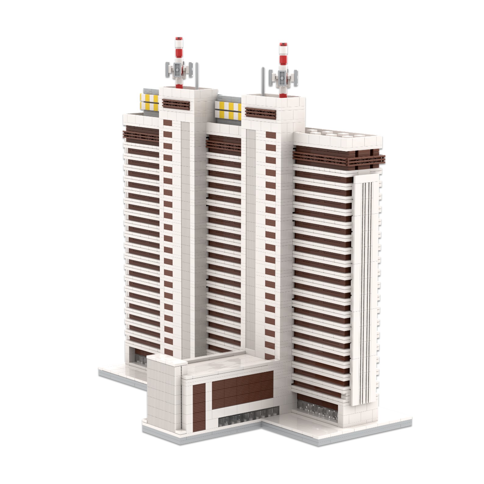 - Todo el edificio se levanta sobre una plataforma de 19,5 x 13 cm cuyo bloque principal, sin contar los salientes.
