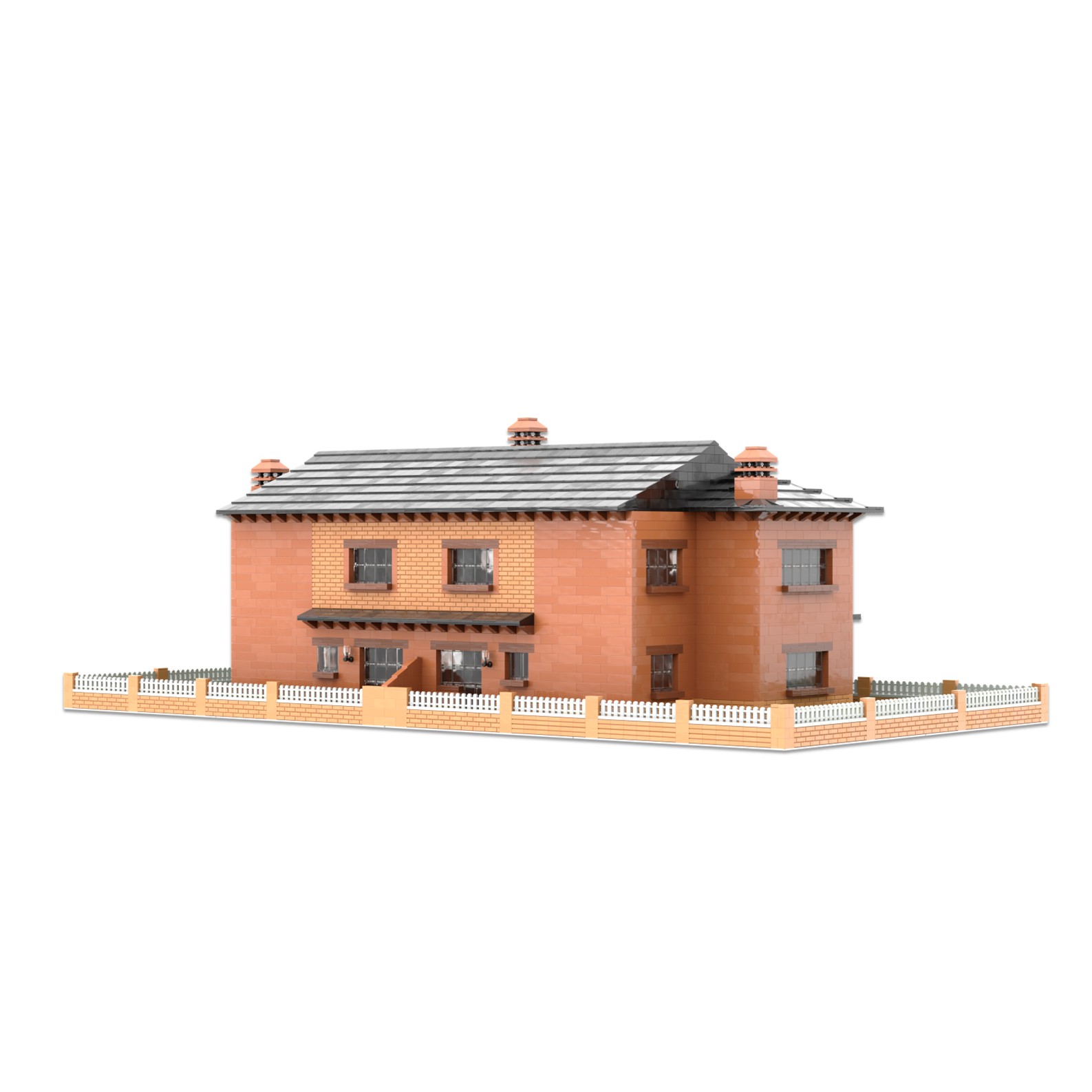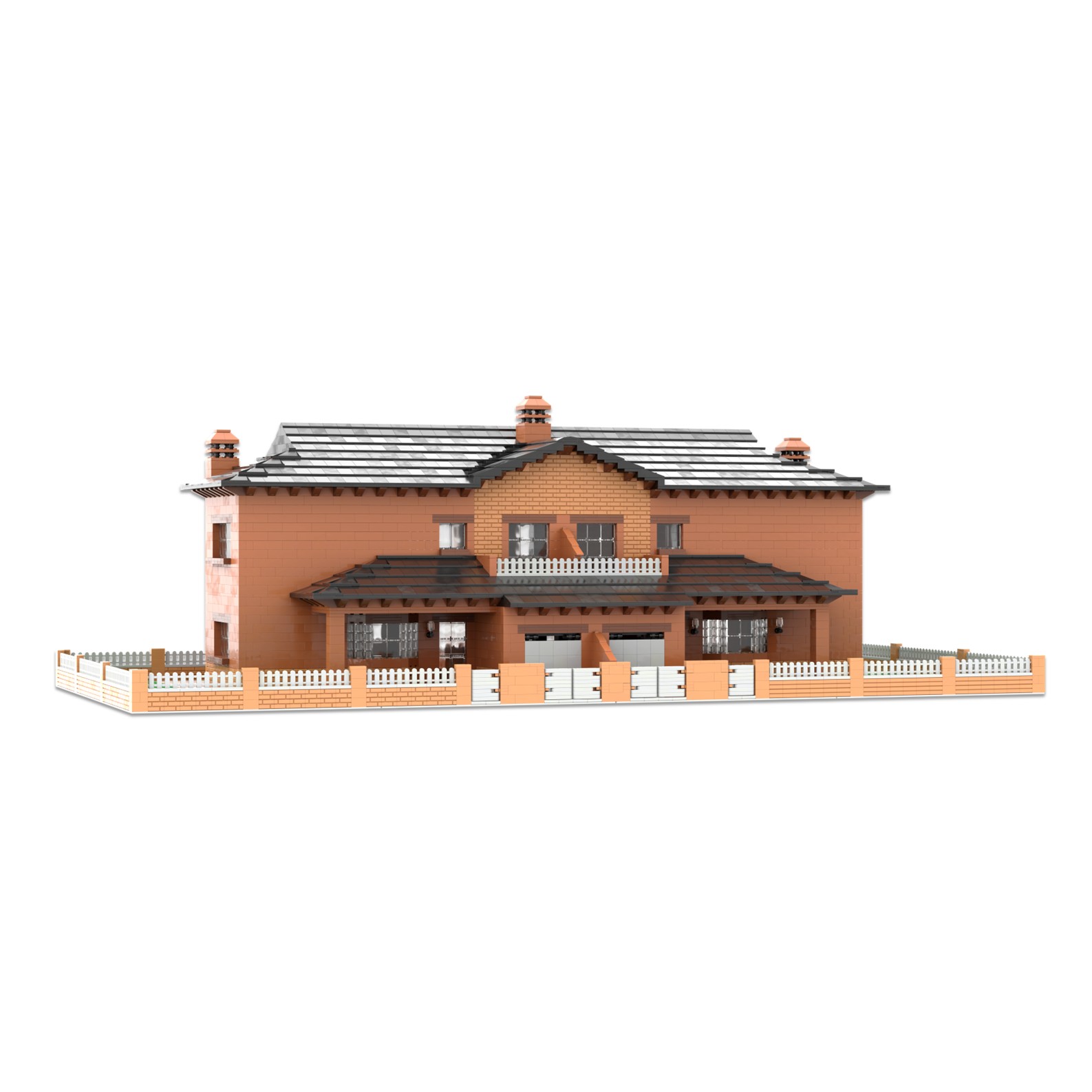 Este modelo se compone de dos casas adosadas distribuidas en dos plantas, cada casa dispone de garaje para un coche, patio trasero y porche delantero cubierto; también se puede personalizar añadiendo un jardín.